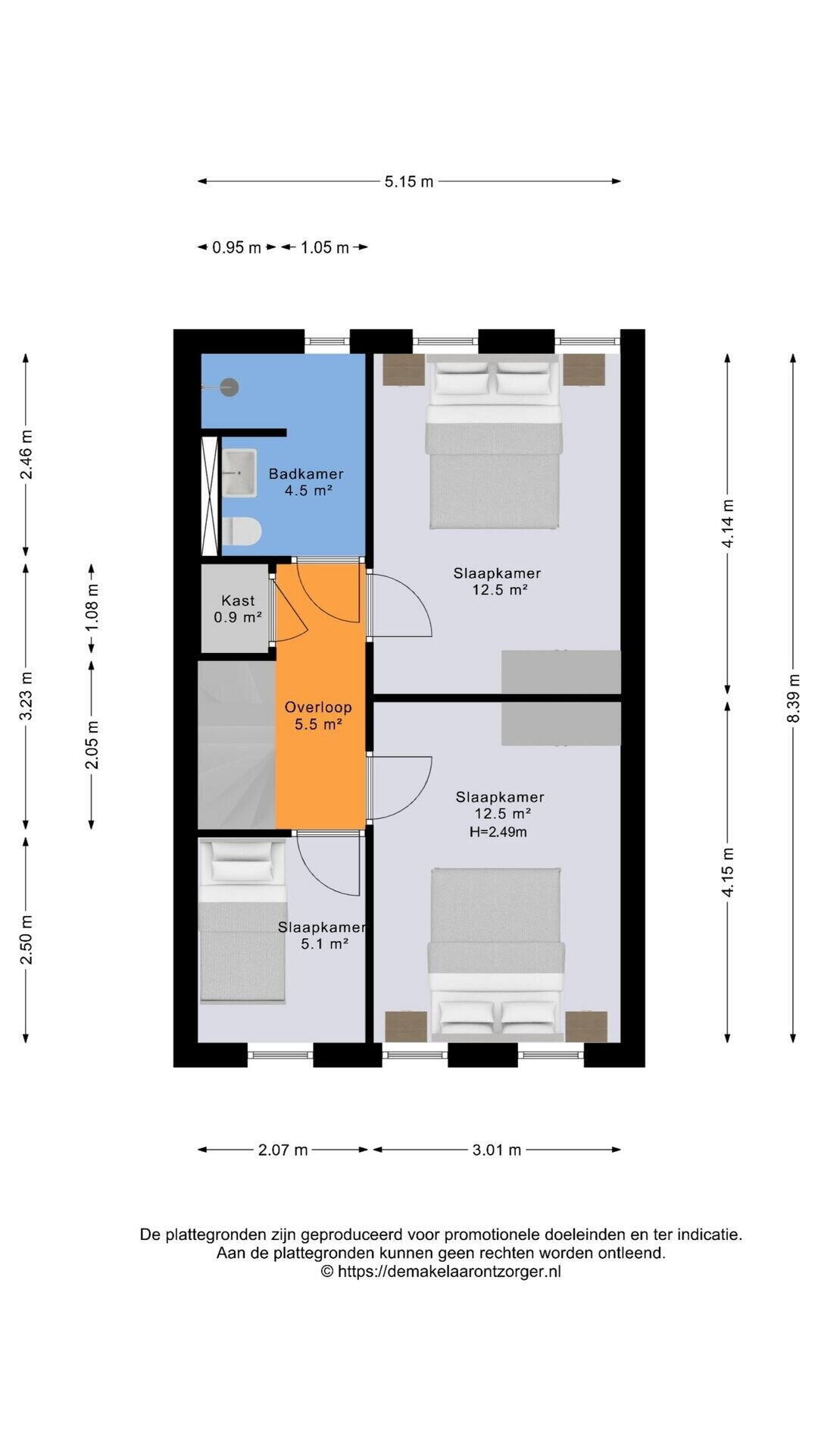 Drie slaapkamers van ca. 13 m², 13 m² en 5 m²;